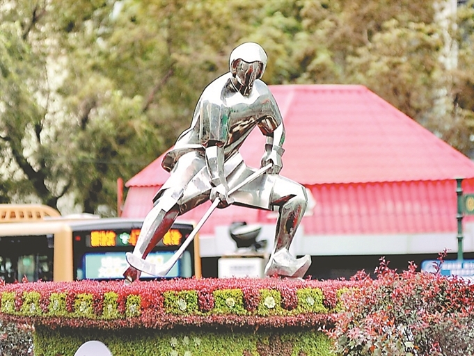 亞冬會主題雕塑亮相冰城街頭