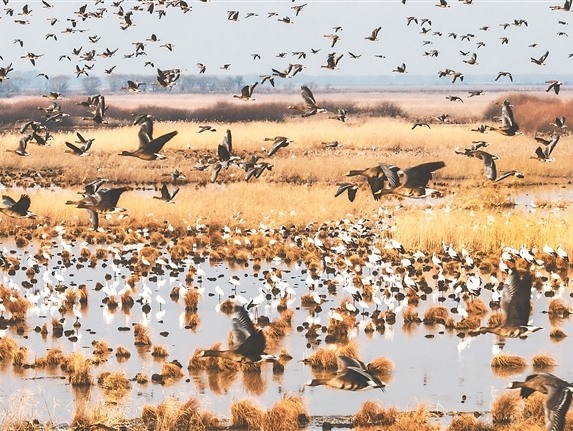 東方白鸛集結(jié)寶清