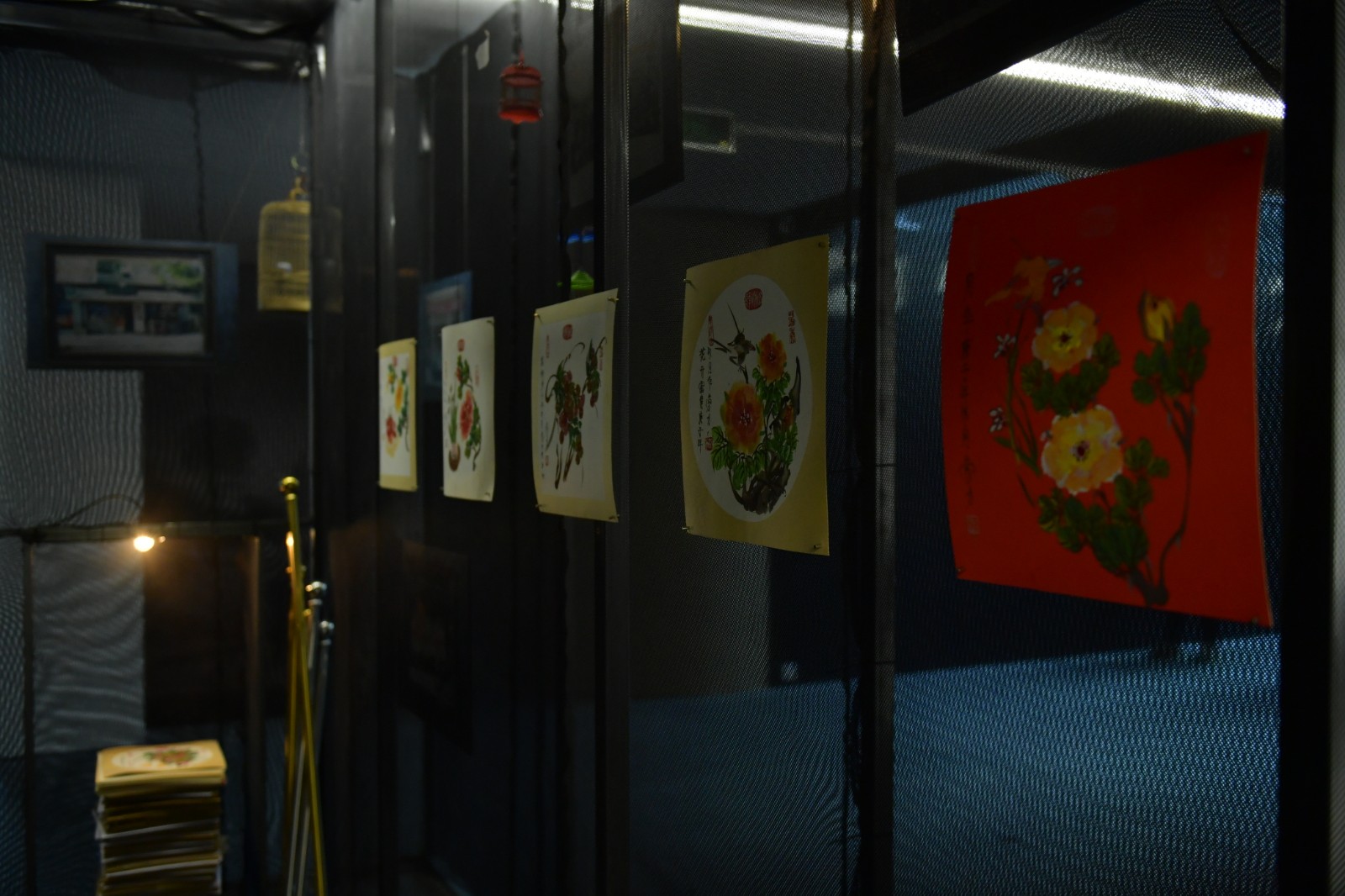 有趣的是,在陳淑瑜與未建筑設(shè)計研究所共同設(shè)計的“迷宮”裝置中,陳淑瑜以策展的方式又介入了耶丁的這段創(chuàng)作經(jīng)歷中。進(jìn)入暗室中的迷宮,觀眾沿著旋轉(zhuǎn)的樓梯向上前行,一路遇到的老照片,帶有時代氣息的畫作,被置于凹陷空間深處的視頻,以及需要置身于“洞穴”中去傾聽的獨白,都昭示著一種極強(qiáng)的私密性,在不見光亮的迷宮中,人們在狹窄而形態(tài)怪誕的通道中甚至無法錯開身來,被迫與他人“分享”私密。