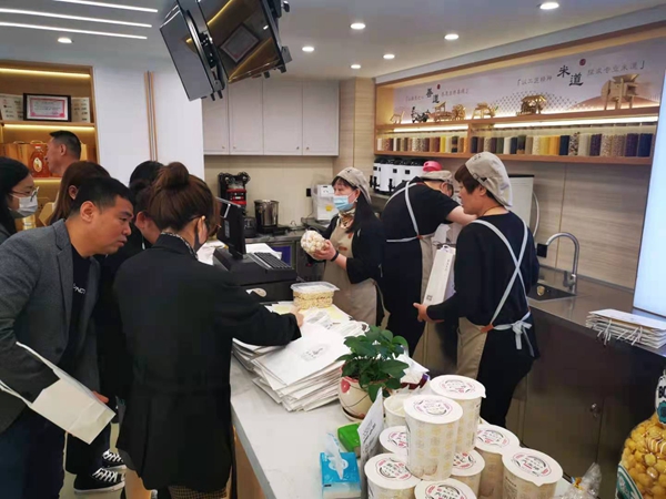 還沒等正式開業(yè),記者看到店里已是人頭攢動,消費者爭相辦理店鋪會員,并連連稱贊:“光吃米飯也很香”“大米護手霜、面膜,果斷入手”“大米店里賣稻田,真是見識到了”“大米味的冰淇淋,打卡成功”“試吃就吃飽了”“米漿的味道讓人陷入回憶殺!”