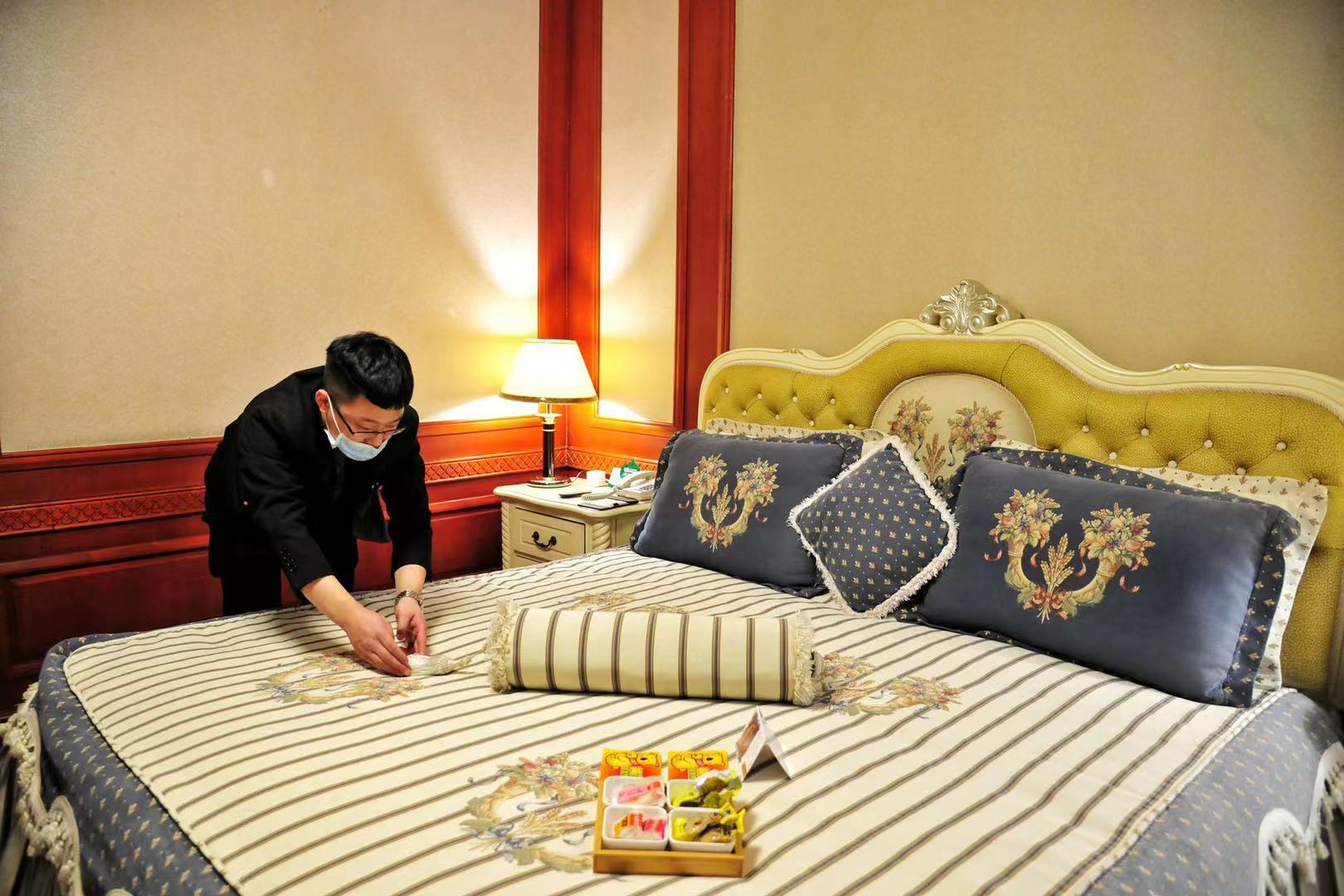 邱冬梅說,為了保證賓客住得安心放心,賓館在疫情防控和安保方面提前做了很多針對性的工作。進(jìn)入4月初就組織全體員工開展業(yè)務(wù)知識(shí)及專業(yè)技能、酒店禮儀、員工儀容儀表等崗位技能培訓(xùn)。