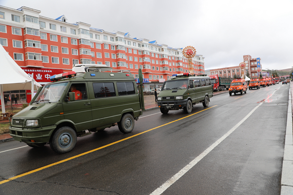 9時,反思活動正式開始。林業(yè)局處級領(lǐng)導與職工群眾鄭重地在在“牢記歷史 汲取教訓 振奮精神 開拓進取 建設(shè)美麗藍莓小鎮(zhèn)”宣傳條幅上,鄭重地簽上了自己的名字。并舉行了聲勢浩大的人員游行、車輛游行。由運兵車、運兵車、人工增雨車等26臺特種車輛,拉響警報,緊跟在由森林消防大隊組成的100余人步行方陣后,他們身穿防火戰(zhàn)斗服,手舉寫有“‘五?六’反思”巨型防火宣傳牌和防火宣傳彩旗,尤其是手執(zhí)高速渦流噴射滅火機、脈沖槍、斯蒂爾風力滅火機的隊員,邁著整齊的步伐,喊著響亮的口號,立即吸引了過往的居民的注意,成為最亮眼的“明星”。