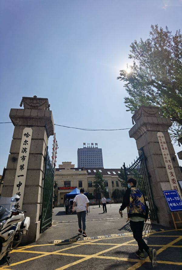 今早8點(diǎn),哈爾濱市第一中學(xué)門前雖然人頭攢動,但車減速,人低語。