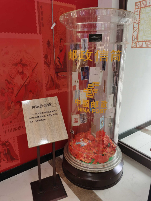 一進(jìn)門(mén)右手邊,是一個(gè)透明的郵政信筒,它來(lái)自2008年北京殘奧會(huì)閉幕式,現(xiàn)場(chǎng)有很多人通過(guò)它投遞出了《寄給未來(lái)的信》。左右兩側(cè)的墻上,懸掛著中華文化郵品,用郵票的形式展示傳統(tǒng)文化,重陽(yáng)節(jié)、梅蘭芳舞臺(tái)藝術(shù)、景德鎮(zhèn)瓷器等具有紀(jì)念意義的郵票都位列其中,這里是集郵愛(ài)好者的天堂。
