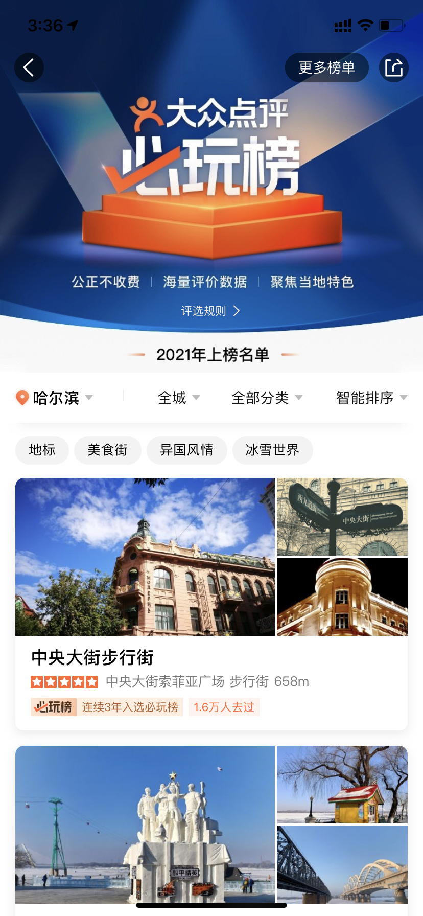 龍頭新聞?dòng)崳?span style="color: rgb(34, 34, 34); text-align: justify; text-indent: 51.84px;">記者孫思琪)日前,大眾點(diǎn)評(píng)發(fā)布2021年“必住榜”“必玩榜”,全國(guó)45個(gè)城市共計(jì)986家酒店、939個(gè)玩樂(lè)目的地最終上榜。哈爾濱16個(gè)玩樂(lè)目的地入選“必玩榜”。