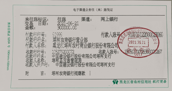 為更好地支持塔河縣應對汛情,戰(zhàn)勝洪災, 6月21日,塔河農(nóng)商銀行在上級銀行的大力支持下,簡化手續(xù),特事特辦,第一時間向塔河縣人民政府捐贈救災款項30萬元,用于塔河縣抗洪救災工作,奉獻了農(nóng)商銀行廣大干部職工的一份愛心。
