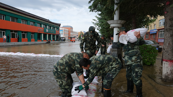 18日凌晨,記者在位于塔河鎮(zhèn)中央大街東端的塔河農(nóng)商銀行機關辦公樓前看到,漲勢很快的洪水正迅猛地漫過中央大街,向街邊的農(nóng)商銀行機關大樓、稅務局辦公樓和電視臺辦公樓等處涌來,而這幾個沿街單位地勢較低,很容易受到洪水的侵襲。為盡量控制洪水水勢,最大限度減少洪水造成的損失,塔河縣防指迅速調集人力物力,主要領導靠前指揮,廣大救援官兵奮勇爭先,在幾個臨街單位外圍用沙袋圍壩攔堵,并調動多臺高壓水泵抽水抗?jié)?,給幾個單位的救援提供了極大地助力,也為其自救創(chuàng)造了更多的時機。
