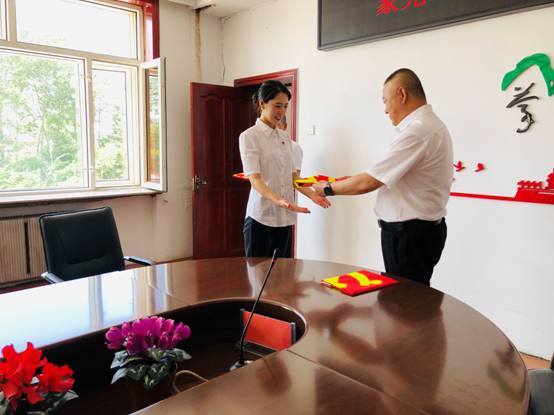 在蒙克山分會(huì)場(chǎng),黨總支書(shū)記為各支部書(shū)記授予黨旗,一名黨員就是一面旗幟,一個(gè)支部就是一座堡壘,一面面鮮紅的黨旗,是一份沉甸甸的責(zé)任與使命。