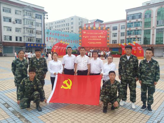 本次活動(dòng)主會(huì)場(chǎng)設(shè)在塔河縣森林防火辦公室廣場(chǎng),共分為5個(gè)部分,分別是老黨員為預(yù)備黨員佩戴黨徽;局處級(jí)以上領(lǐng)導(dǎo)及“五大先鋒”為支部書(shū)記授旗;新黨員進(jìn)行入黨宣誓,老黨員重溫入黨誓詞;全體黨員干部合唱紅色歌曲《沒(méi)有共產(chǎn)黨就沒(méi)有新中國(guó)》以及與黨旗合影。