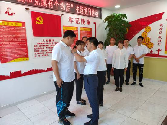 在馬林林場(chǎng)分會(huì)場(chǎng),2名老黨員正在為預(yù)備黨員佩戴黨徽,這光榮的儀式對(duì)于新黨員來(lái)說(shuō)是一種榮譽(yù)、一種激勵(lì)、一種鞭策,更是中國(guó)共產(chǎn)黨人精神的傳承。