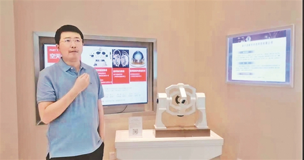 海鄰科企業(yè)發(fā)展部經(jīng)理徐敬寶向記者介紹產(chǎn)品功能。