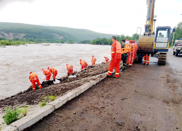 汛期呼中鎮(zhèn)聯(lián)合多部門搶修景觀大壩塌方處