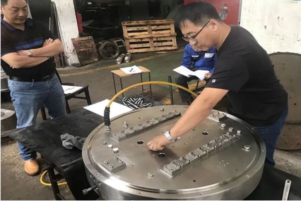 團(tuán)隊成員不僅是攻關(guān)科研一線的技術(shù)難題的尖刀,同時也是生產(chǎn)一線的質(zhì)量把關(guān)員。水下控制模塊的機械加工裝配在齊齊哈爾第二機床廠完成,但因水下控制模塊屬于特種設(shè)備,水下控制模塊涉及到水下14路液壓接頭和4路多芯電接頭同步精確對接,加工時對焊接工藝、振動時效處理、加工尺寸形位公差和裝配工藝要求非常高。放心不下的賈鵬奔赴現(xiàn)場,兩個多月的時間里,和二機床的工人師傅們摸爬滾打在一起,對于水下控制模塊的每條焊縫質(zhì)量,每道加工裝配工藝,每個公差尺寸進(jìn)行嚴(yán)格把控,直到水下控制模塊對接試驗成功。
