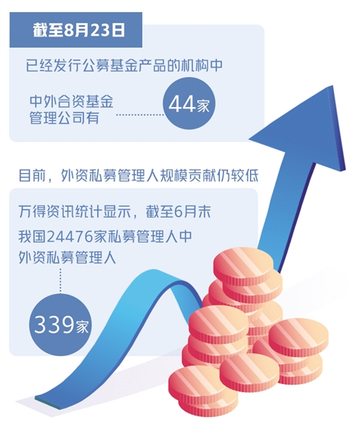 在外資獨資公募基金發(fā)行之前,我國境內(nèi)已有多家中外合資的公募基金公司、外資私募基金公司。萬得資訊統(tǒng)計顯示,截至8月23日,已經(jīng)發(fā)行公募基金產(chǎn)品的機構(gòu)中,中外合資基金管理公司有44家,其中大部分合資公司被外資持有49%的股份,合資公募基金公司發(fā)展兩極分化的狀態(tài)比較明顯。