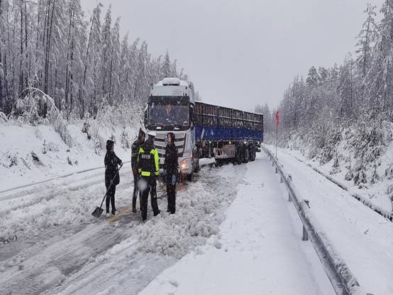 為有效消除降雪對(duì)交通的影響,新林區(qū)以雪為令,10月10日凌晨,新林區(qū)交通運(yùn)輸局派出4輛清雪車(chē)、2輛保障車(chē),迅速開(kāi)展路面清雪工作,經(jīng)過(guò)數(shù)個(gè)小時(shí)的不間斷作業(yè),G111國(guó)道、林碧公路路面積雪得到了有效清理。