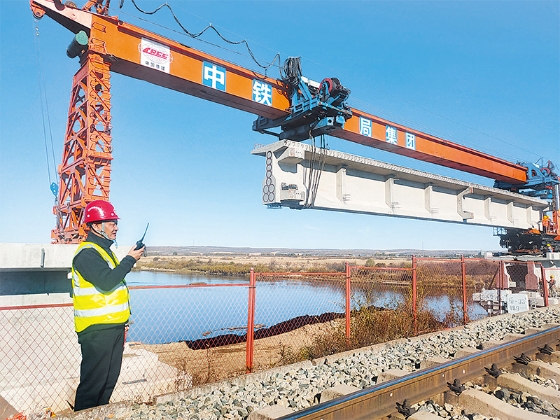 北黑鐵路升級改造工程新建遜別拉河鐵路大橋完成架梁