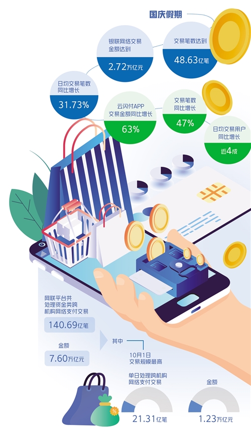 “十一”國慶假期,銀聯(lián)網(wǎng)絡(luò)交易金額達(dá)2.72萬億元——