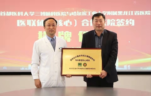 黑龍江經(jīng)濟(jì)網(wǎng)訊(林穎 董宇翔 梁新立) 10月19日,黑龍江省醫(yī)院與首都醫(yī)科大學(xué)三博腦科醫(yī)院結(jié)成醫(yī)聯(lián)體簽約揭牌儀式在北京舉行。今后雙方將在遠(yuǎn)程會(huì)診、技術(shù)指導(dǎo)與支持、人才培養(yǎng)和資源共享等多方面開展緊密合作,攜手共進(jìn),優(yōu)勢(shì)互補(bǔ),共同提高在神經(jīng)科學(xué)領(lǐng)域臨床、科研及教學(xué)水平,提升醫(yī)療服務(wù)能力,切實(shí)為黑龍江省及周邊地區(qū)百姓提供優(yōu)質(zhì)的醫(yī)療衛(wèi)生服務(wù)。