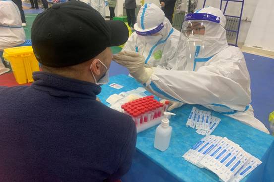 在呼瑪縣第二輪全民核酸實(shí)戰(zhàn)演練現(xiàn)場(chǎng),雖然當(dāng)?shù)貧鉁匾呀?jīng)降至零下十度左右,但排隊(duì)的群眾都能夠做到嚴(yán)格遵守間隔一米、戴口罩、不聚集的規(guī)定,配合醫(yī)護(hù)人員高質(zhì)高效開(kāi)展核酸檢測(cè)采樣。在社區(qū)、公安等各部門(mén)工作人員和志愿者的疏導(dǎo)下,檢測(cè)現(xiàn)場(chǎng)秩序井然、有條不紊。