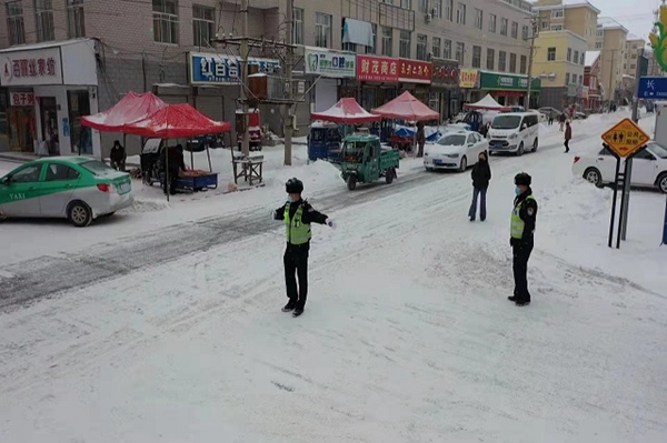 為了緩解降雪帶來的交通壓力,呼瑪縣公安交警大隊對縣內各條主干道及車輛密集路口和各中小學校門前,分別加派了警力,上路執(zhí)勤,指揮交通,全力保障居民安全出行。
