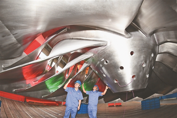 哈電集團(tuán)研制的世界首臺(tái)長短葉片1000MW白鶴灘精品轉(zhuǎn)輪。圖片由受訪單位提供