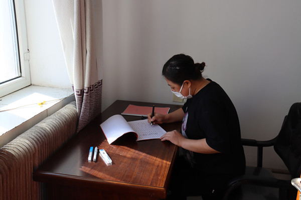 圖為古蓮河露天煤礦疫情防控人員對來往客人進行登記