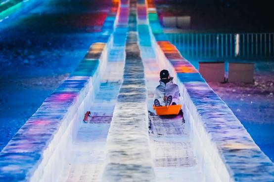 作為哈爾濱冰雪大世界最具人氣的游樂項(xiàng)目,今年的超級(jí)冰滑梯滑道長達(dá)423米,高低落差達(dá)21米,100米滑行速度快過蘇炳添創(chuàng)造的9秒83新亞洲紀(jì)錄,游客乘坐大滑梯時(shí)也能體驗(yàn)一把飛人的感覺。