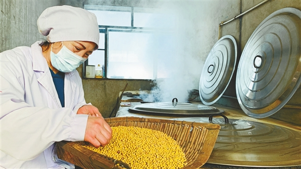 漫長的歲月,手藝人不斷積累經(jīng)驗(yàn),對豆子在發(fā)酵過程中不斷變化的溫度、色澤、香氣等有了直覺判斷,才讓胡曉華的手工大醬保存了讓人認(rèn)可的老味道。經(jīng)常有人慕名找她咨詢,“我家大醬為啥不發(fā)酵?”“大醬酸了咋辦?”……她都一一耐心地解答。