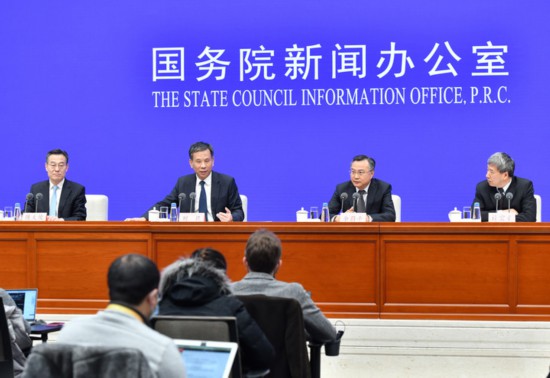 2月22日,財政部部長劉昆、財政部副部長余蔚平、財政部副部長許宏才出席國新辦新聞發(fā)布會。新華社記者李鑫攝