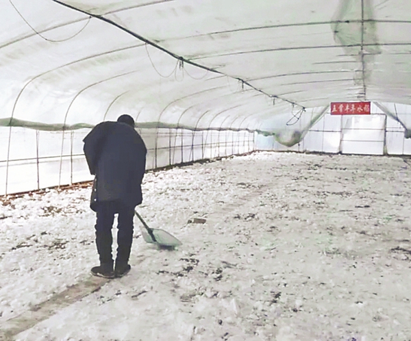 雪后清理水稻育苗大棚積雪。圖片由龍江氣象提供