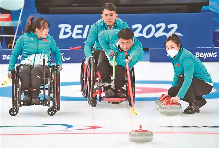 北京冬殘奧會的第一天,中國輪椅冰壺隊開局不利,先后不敵加拿大隊和瑞典隊,壓力可想而知。之后中國隊迅速調(diào)整狀態(tài)。6日,9:3戰(zhàn)勝愛沙尼亞隊,贏得循環(huán)賽首勝。7日,接連戰(zhàn)勝韓國隊和瑞士隊,以三勝兩負的戰(zhàn)績與拉脫維亞隊并列第三名。11日,中國隊對陣加拿大隊爭奪決賽名額。12日,輪椅冰壺決賽中,中國隊在前四局1:2落后瑞典隊的情況下改變戰(zhàn)術,利用對手失誤成功拿到4分。最終,中國輪椅冰壺隊8:3戰(zhàn)勝瑞典奪得冠軍。