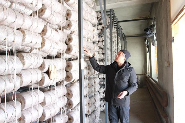 靈芝養(yǎng)殖戶在菌包培養(yǎng)室內查看培養(yǎng)室的溫度、濕度是否適宜靈芝生長(趙明 攝)