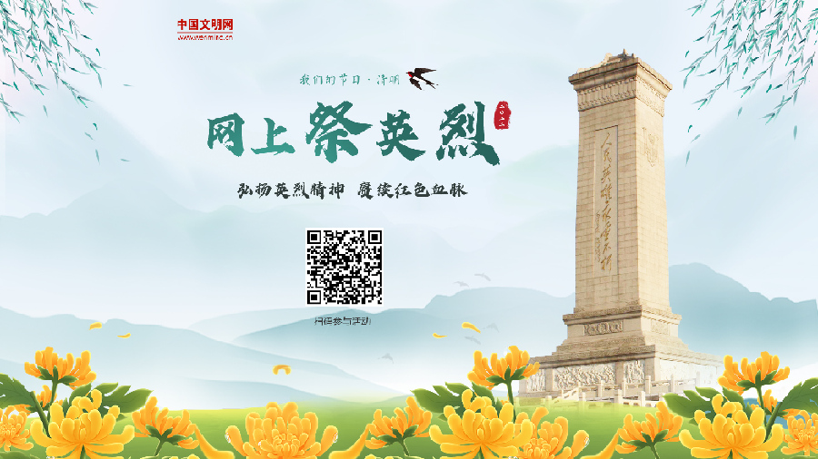 “英雄是民族最閃亮的坐標(biāo)?!睘榱擞肋h(yuǎn)銘記為民族獨(dú)立、人民解放和國(guó)家富強(qiáng)、人民幸福作出巨大貢獻(xiàn)和犧牲的英雄烈士,在全社會(huì)營(yíng)造崇尚英烈、緬懷英烈、學(xué)習(xí)英烈、捍衛(wèi)英烈的濃厚氛圍,凝聚奮進(jìn)新征程、建功新時(shí)代的強(qiáng)大力量,4月2日至6日,中央文明辦三局、中國(guó)文明網(wǎng)聯(lián)合開(kāi)展“弘揚(yáng)英烈精神 賡續(xù)紅色血脈——2022網(wǎng)上祭英烈”網(wǎng)絡(luò)文明傳播活動(dòng)。