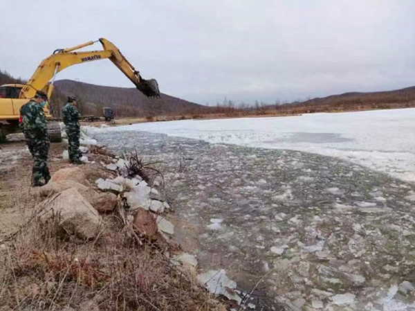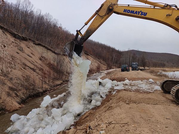 加格達奇林業(yè)局利用挖掘機開展破冰作業(yè)(趙子敬 攝)