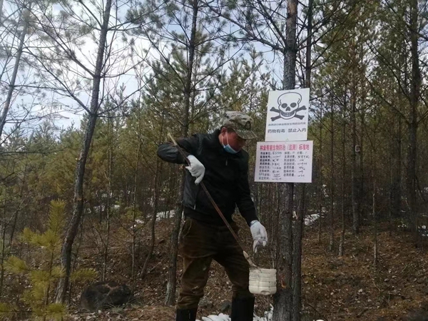 林場組織技術員深入現(xiàn)地,跟班作業(yè),進行監(jiān)督指導,同時對參與防治的工作人員進行了防治安全指導并配發(fā)口罩手套等防護用品,使鼠害防治工作能夠安全有序地展開。