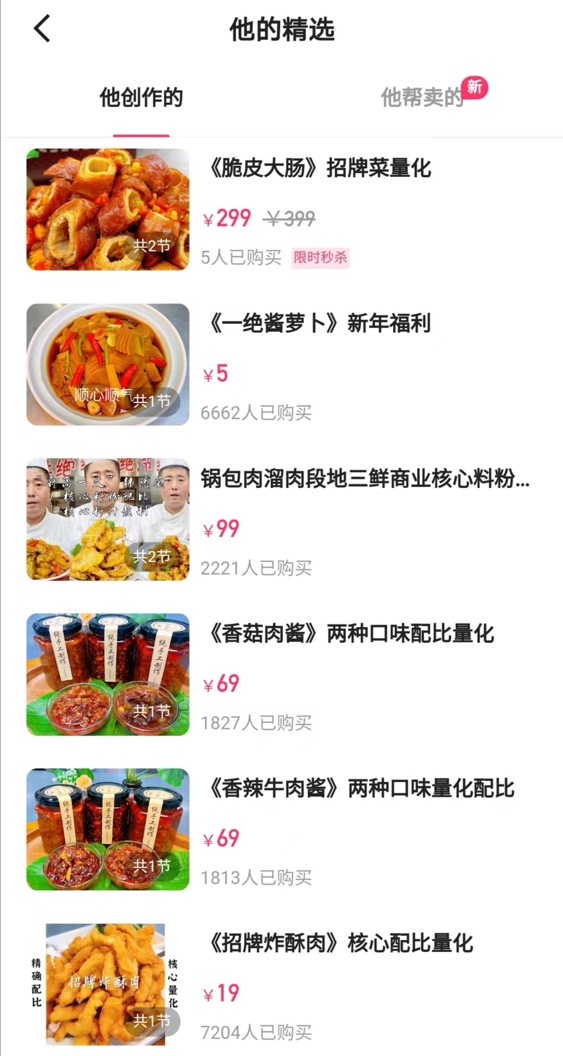 作為一位有著25年美食領(lǐng)域從業(yè)經(jīng)驗(yàn)的老廚師,韓總廚憑借一手精湛的廚藝,來到快手后很快就積累了上萬粉絲,為他打造付費(fèi)課程奠定了基礎(chǔ)?!皩Ρ攘似渌_(dá)人的內(nèi)容,我覺得自己還是有一定的內(nèi)容優(yōu)勢的,所以也試著做了課程,看看是否有人愿意購買?!?
