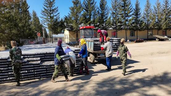 在各項(xiàng)條件具備后,苗圃搶抓時間進(jìn)行輕基質(zhì)杯生產(chǎn)工作和起苗作業(yè),職工們發(fā)揚(yáng)實(shí)干精神,積極投入到生產(chǎn)工作中來,每天生產(chǎn)輕基質(zhì)近1萬杯,并已完成新播落葉松起苗工作。