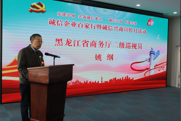 省商務廳二級巡視員姚綱在致辭中指出,此次黑龍江省“誠信企業(yè)百家行”暨“誠信興商宣傳月”活動,是加強誠信宣傳,提升全社會誠實守信意識,優(yōu)化消費和營商環(huán)境的一次重要舉措。省商務廳將會同相關單位統(tǒng)籌協(xié)調(diào)、密切配合,做到政府帶頭講誠信,商貿(mào)流通企業(yè)為“誠信興商”活動主體,通過宣傳商務誠信文化和信用管理知識,引導市場主體樹立誠信興商經(jīng)營理念,提高信用管理能力,營造崇信守法的營商環(huán)境。培育消費者信用消費習慣,提升風險防范意識,依法維護自身合法權(quán)益,引導和帶動整個商貿(mào)行業(yè)的誠信建設。