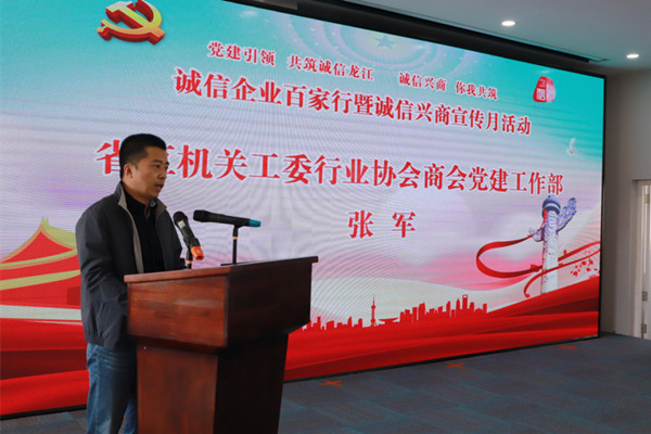 活動現(xiàn)場,省直機關工委行業(yè)協(xié)會商會黨建工作部張軍為本次活動致辭。他表示,此次活動以“黨建引領、共筑誠信龍江”為主題,是推動黨建工作與行業(yè)協(xié)會商會業(yè)務工作融合發(fā)展的具體舉措,希望省誠促會始終高舉黨的旗幟,堅定正確的政治方向,發(fā)揮誠信興商聯(lián)盟平臺作用,廣泛聯(lián)合龍江誠信社會組織,建設龍江誠信高地,打造誠信示范群體,形成誠信集聚效應,共興誠信之風、樹立誠信典范、弘揚誠信力量,樹立龍江社會、龍江企業(yè)誠信文化典型,打造我省“誠信龍江”閃亮名片。