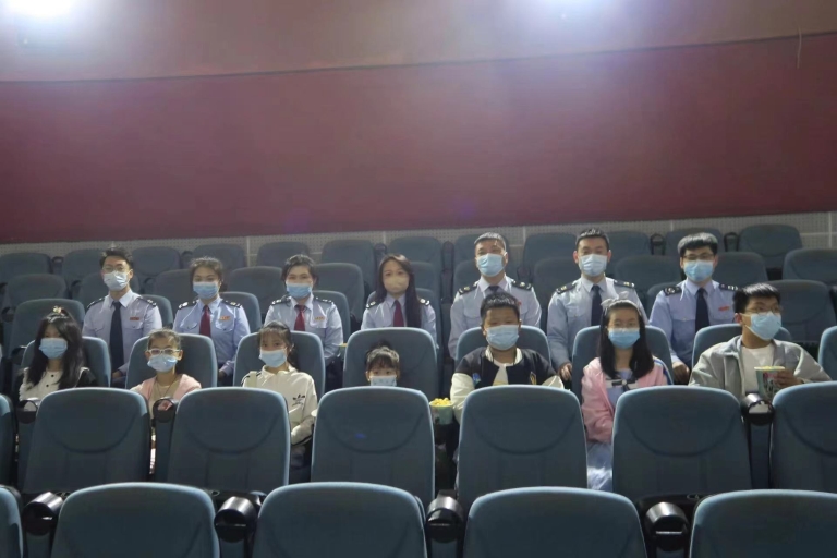 稅務工作人員與孩子們一同觀影
