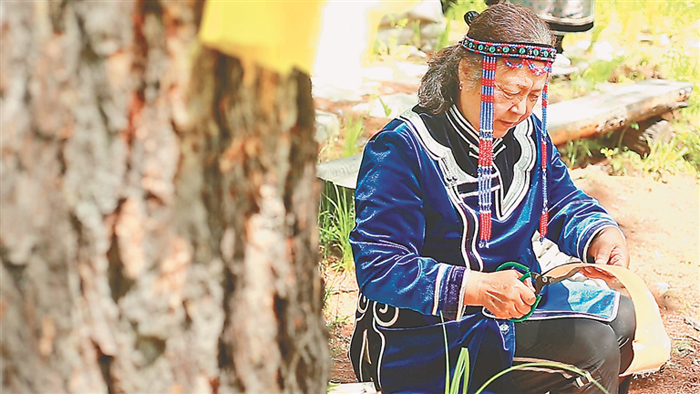 在新生鄂倫春族鄉(xiāng),舞蹈演員們伴隨著鼓聲跳動著,生動展示著鄂倫春族舞蹈和服飾。在民族體驗區(qū),非遺傳承人拿出看家本領(lǐng),紛紛展示非遺魅力,鄂倫春族剪紙、樺樹皮制作、刺繡、皮袍制作……鄂倫春族原汁原味的傳統(tǒng)技藝一一呈現(xiàn)眼前。