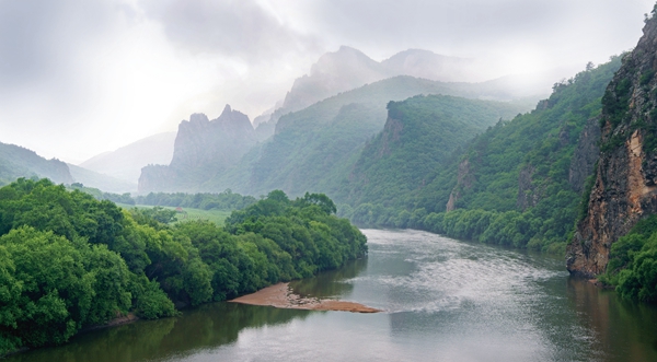 東寧洞庭風(fēng)景區(qū)處于綏芬河的中游,是東寧知名的旅游景點(diǎn)之,洞庭湖周圍山峰崖懸壁陡,陡岸垂直落差100米,有“江南峽谷”之韻感。在群山懷抱的翡翠世界里,彎彎曲曲的綏芬河穿流在風(fēng)景區(qū)之中,河水靜謐剔透顯得格外安靜。