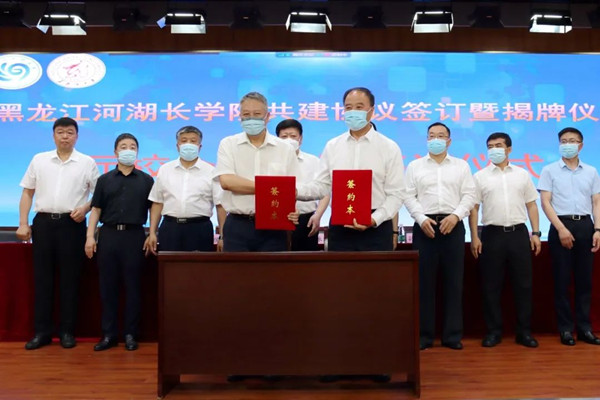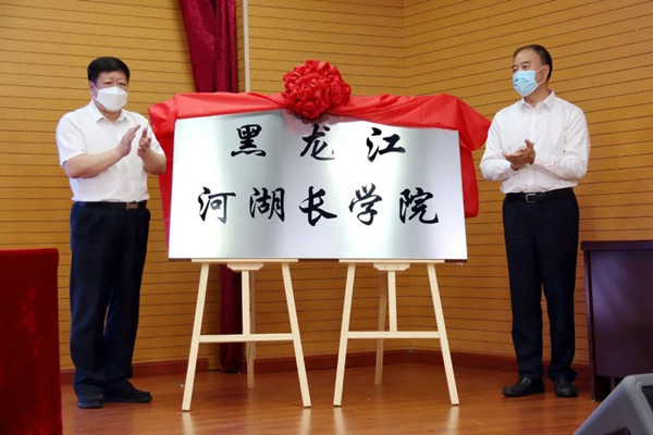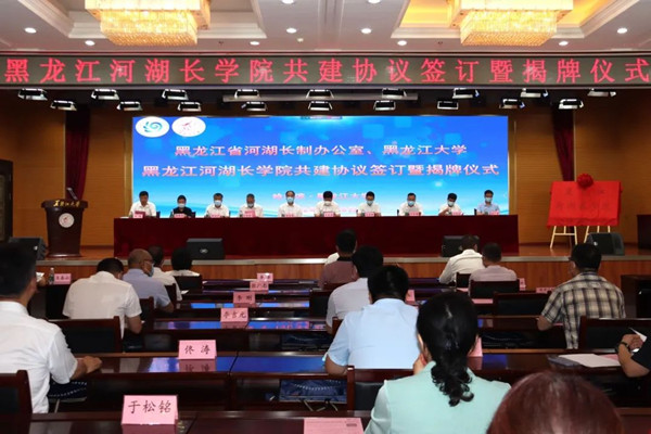 儀式上,省水利廳黨組書記、廳長(zhǎng)、省河湖長(zhǎng)制辦公室常務(wù)副主任侯百君和黑龍江大學(xué)校長(zhǎng)付宏剛簽訂了共建協(xié)議,與黑龍江大學(xué)黨委書記王永清共同為黑龍江河湖長(zhǎng)學(xué)院揭牌。