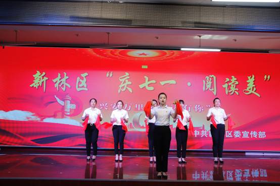 最后,由新林區(qū)處級(jí)領(lǐng)導(dǎo)干部帶來(lái)的詩(shī)朗誦《黨旗飄飄》,以激蕩澎湃的深情頌讀,展示了從空間到時(shí)間、從歷史到當(dāng)前的壯闊畫面,抒發(fā)了心中對(duì)黨、對(duì)祖國(guó)的無(wú)限熱戀,表達(dá)了永遠(yuǎn)追隨這面光榮旗幟的錚錚誓言和堅(jiān)定決心。聽得在場(chǎng)人員心潮澎湃,感慨萬(wàn)千。新林區(qū)將繼續(xù)拓展“興安萬(wàn)里·閱讀有你”全民閱讀活動(dòng),讓越來(lái)越多新林人愛上閱讀,為新林區(qū)轉(zhuǎn)型振興發(fā)展增添強(qiáng)大精神動(dòng)力,以新林努力、新林有為、新林貢獻(xiàn)的優(yōu)異成績(jī)迎接黨的二十大勝利召開。