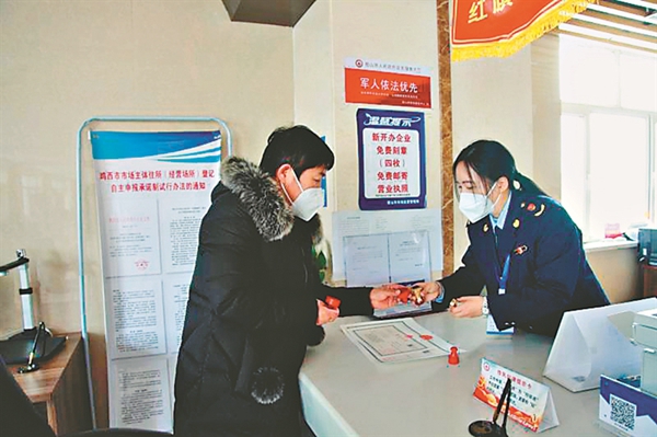 如今,凡是在密山市新注冊的企業(yè),都會享受到由密山市政務服務中心特制的 “免費+”服務套餐——即為新注冊的企業(yè)免費刻章、免費復印、免費快遞。2021年6月至今,密山市為新注冊的390家企業(yè)免費刻制印章1560枚,免費快寄印章、營業(yè)執(zhí)照、房產(chǎn)證等1000余件,同時還為500多戶企業(yè)、30000多名群眾免費復印各種材料。