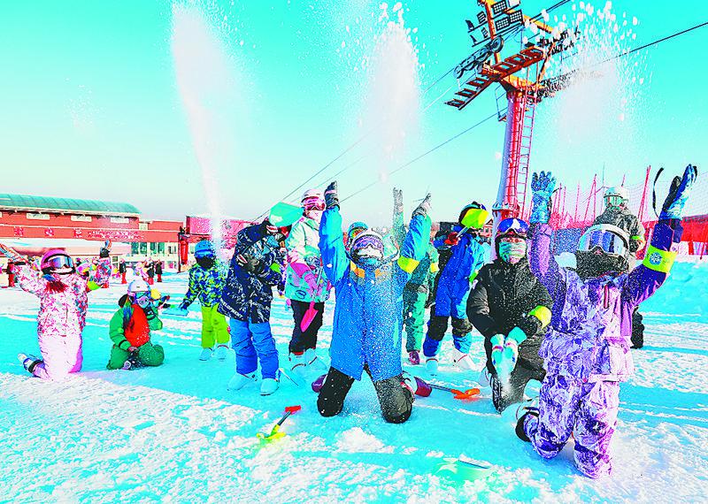 游客在滑雪場激情戲雪。