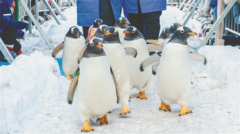 “我們就是專程為‘淘學(xué)企鵝’而來(lái),能在哈爾濱看到全國(guó)僅有的企鵝冰雪巡游,真的不虛此行?!痹缭?年前,上海游客孟蕓就通過(guò)短視頻看到它們背著小書(shū)包打卡黑龍江美景的身影,成為妥妥的“鵝粉”。她說(shuō),為了能在前排近距離觀看,她更是早早就來(lái)到極地廣場(chǎng)等候。哈爾濱極地公園營(yíng)銷部經(jīng)理崔美艷說(shuō),“淘學(xué)企鵝冰雪巡游”自啟動(dòng)以來(lái),每日引萬(wàn)人打卡,成為今冬的爆款網(wǎng)紅活動(dòng),吸引全國(guó)游客來(lái)到哈爾濱看企鵝打卡拍攝,全網(wǎng)曝光量更是在25天的時(shí)間里突破了8.5億。
