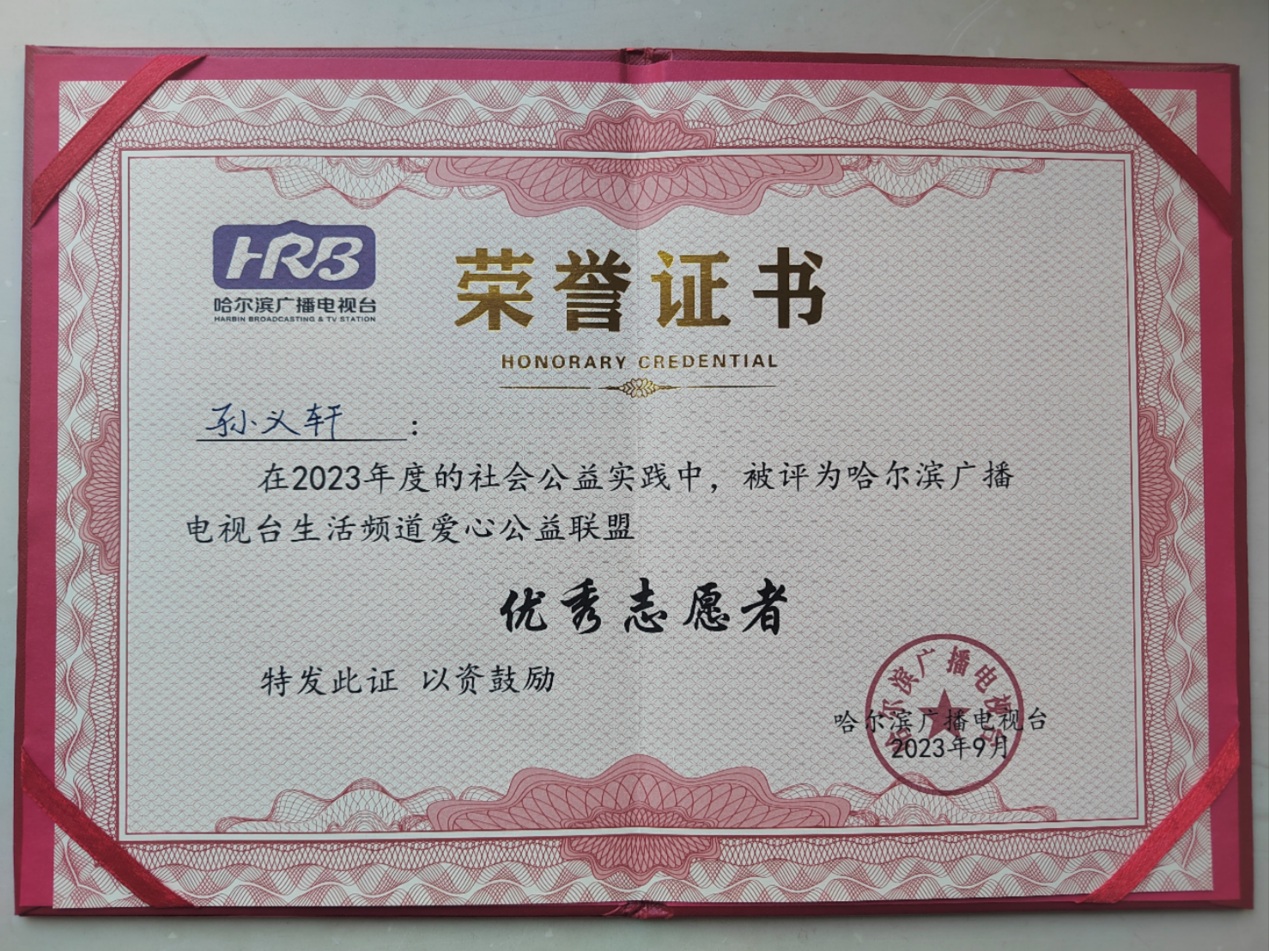 上學(xué)后的孫義軒同學(xué)更是把助人為樂當(dāng)作自己日常的志愿行動。他一邊認(rèn)真學(xué)習(xí)文化課程,一邊通過積極參加志愿活動提升自己。