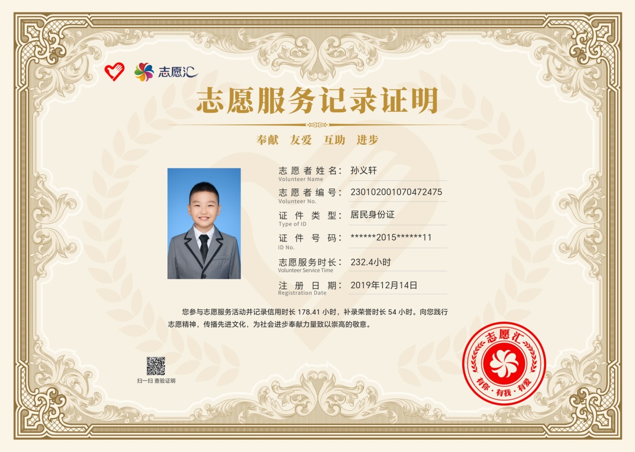 黑龍江經(jīng)濟(jì)網(wǎng)訊(楊東生)從2019年12月14日起累計參加志愿服務(wù)178小時,學(xué)?!翱酆萌松谝涣?圩印眱?yōu)秀表演獎獲得者,哈爾濱廣播電視臺生活頻道愛心公益聯(lián)盟優(yōu)秀志愿者,黑龍江省青少年發(fā)展基金會“我與小樹共成長”參與者……他就是來自哈爾濱市江沿小學(xué)三年一班的孫義軒同學(xué)。