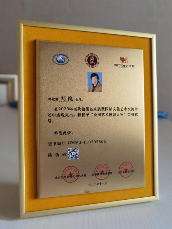 龍江著名美術家劉純被授予中外國際文化交流大使